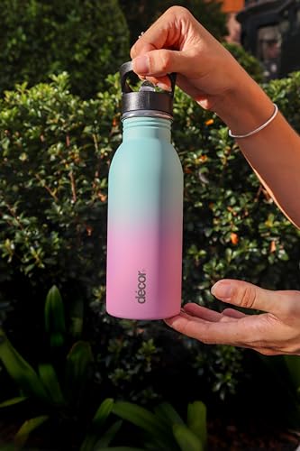 Décor Snap n Seal 500ml Stainless Steel Water Bottle with Straw, BPA Free – Leakproof Metal Flask with Carry Handle for School, Travel, Work & Gym – Ideal Drinking Bottle for Kids & Adults – Ombre