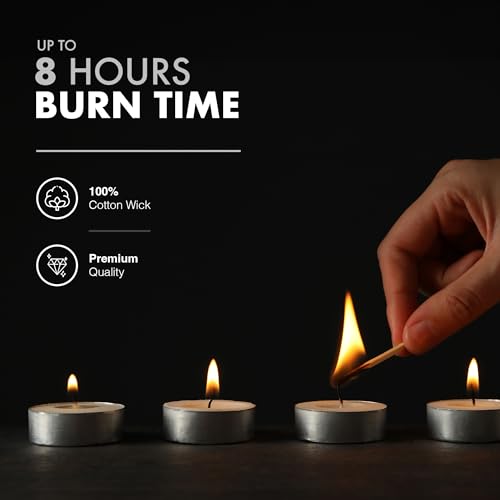 Reliable 8-Hour Burn Time: Each tea light offers up to 8 hours of consistent, steady light, perfect for long dinners, events, and overnight relaxation.