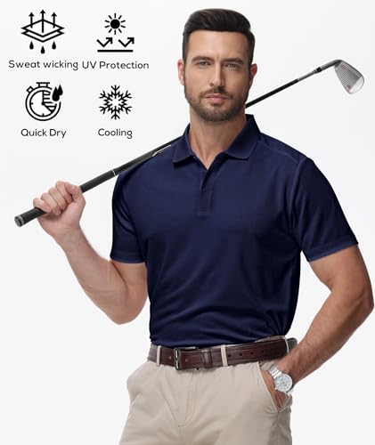 Djtnzdm Mens Golf Polo Shirts Short Sleeve Breathable Sport Tennis Polo Polyester Quick Drying Basic Solid Summer Tops 3 Pack