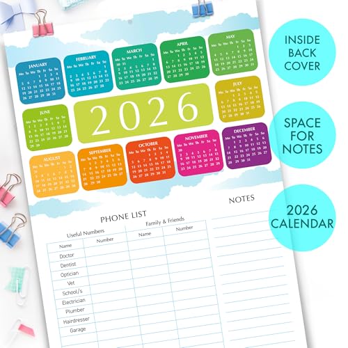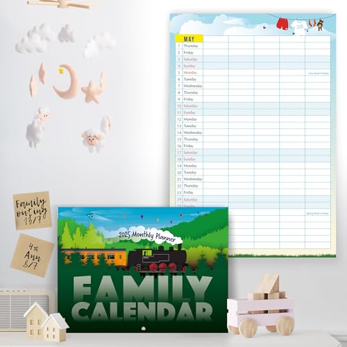 DISPLAY – This family calendar 2025 uk is easy to hang on a wall as it has a reinforced metal hole on the first page. UK bank holidays, January to December 2025