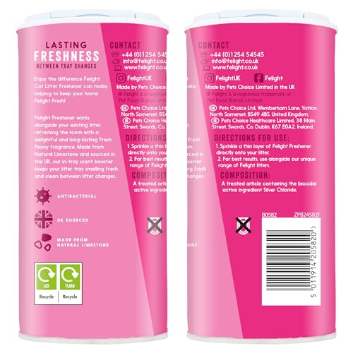 Specification: Felight Antibacterial Cat Litter Freshener Powder, Floral Peony Scent – Effective Odour Control, Longer Lasting Freshness, Made in the UK (300ml)