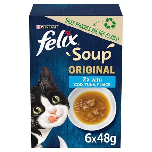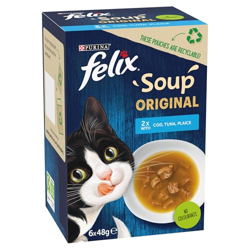 Specification: FELIX Soup Fish Selection Plaice, Tuna and Cod Wet Cat Food 6x48g (Pack of 8)