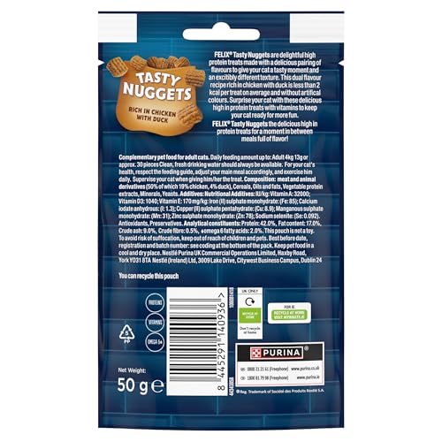 Specification: FELIX Tasty Nuggets Chicken & Duck Cat Treats 50g (Pack of 8)
