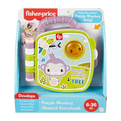 Fisher-Price Baby Toy Purple Monkey Musical Storybook with Lights & Sounds for Infants & Toddlers Ages 6+ Months, JFC75