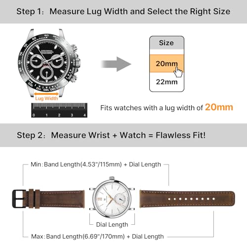 Specification: Fullmosa 20mm 22mm 18mm Leather Watch Straps, Quick Release Watch Strap for Men Women, 2 Pack Soft Replacement Bands with Stainless Steel Buckle