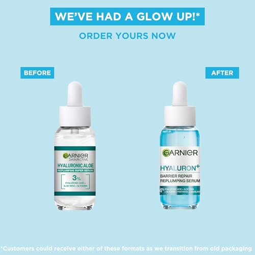 Garnier Hyaluron Barrier Repair Replumping Serum, Hydrates & Replumps, Reinforce Skin Barrier, With 4% Hyaluronic Acid, Aloe Vera, Glycerin, Panthenol & Squalane, Cruelty Free & Vegan, 30ml