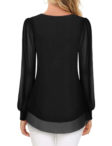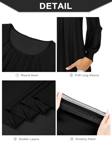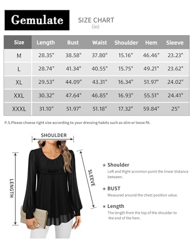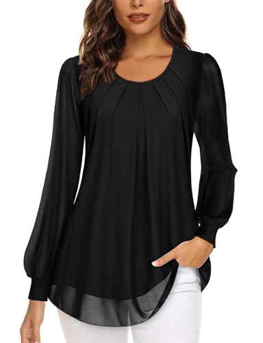 Specification: Gemulate Women’s Blouses Ladies Long Sleeve Tops Chiffon Tops for Women UK Crew Neck Pleated Front Loose Fit Ladies Top Flowy Double Layered Mesh Shirts M-3XL