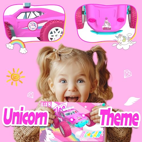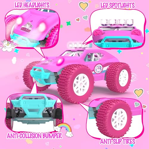 GirliGlee Remote Control Cars,1/18 Unicorn Pink LED RC Car with 2 Batteries,Girls Toys Age 5 6 7 8 9,Gifts for 5-10 Year Old,Unicorn Gifts for Girls,Girls Birthday Presents,Monster Truck 20KM/h
