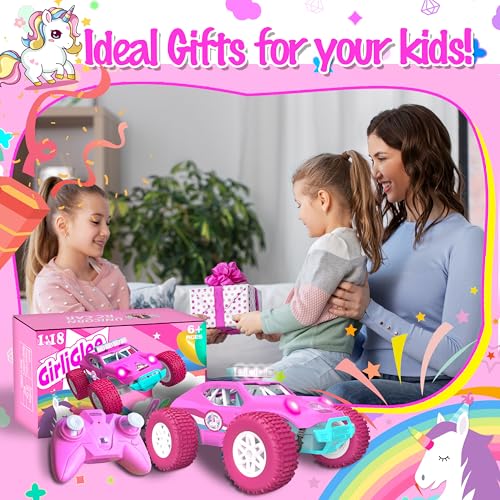 Specification: GirliGlee Remote Control Cars,1/18 Unicorn Pink LED RC Car with 2 Batteries,Girls Toys Age 5 6 7 8 9,Gifts for 5-10 Year Old,Unicorn Gifts for Girls,Girls Birthday Presents,Monster Truck 20KM/h