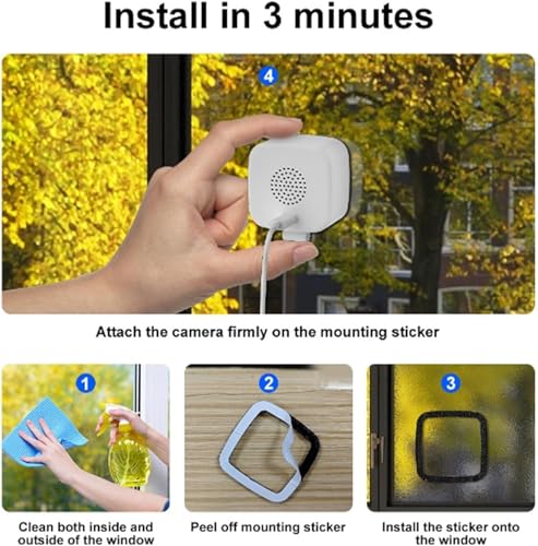【Quick Installation】The device can be installed in just four simple steps, without the need for professional tools or complicated operations. Just tear off the sticker to fix it, and it is plug-and-play with a USB power supply.