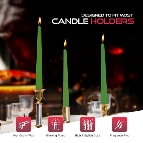 Elegant Colors for Every Occasion: Choose from classic white candles, vibrant red candles, or stylish green candles to suit any setting. These tapered dinner candles enhance home decor, formal events, and holiday celebrations with timeless elegance.