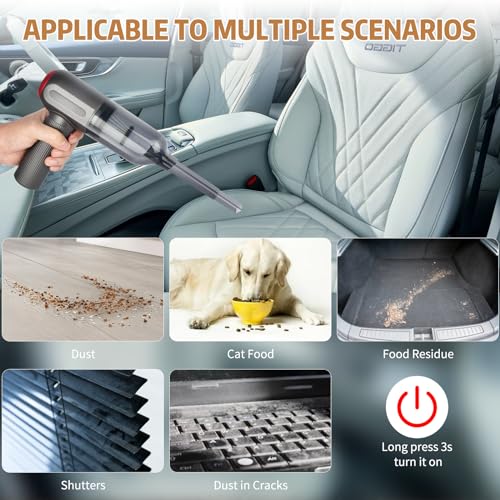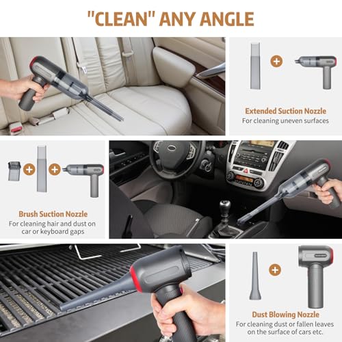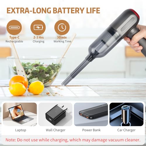 🎁【Long Using Time & Fast Charging】- Our cordless handheld vacuum uses a type-C charging feature. Is designed to keep up with your cleaning needs, this car vacuum cleaner can be quickly recharged within 2-3 hours, and keeps super long cleaning time about 20-30 mins.Say goodbye to hassle and hello to speedy, efficient charging, so you can quickly get back to your cleaning adventures. Just one charge will meet your daily cleaning need.