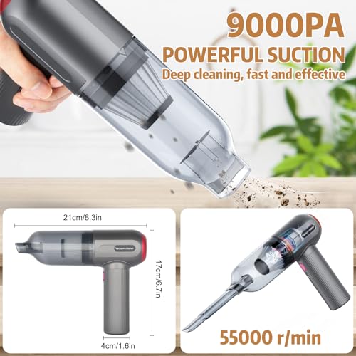 Handheld Vacuum Cordless, 9000Pa Powerful Car Vacuum Cleaner, Rechargeable Portable Lightweight Mini Vacuum Cleaner, USB Car Vacuum Cleaner Car Cleaner for Pet Hair, Car, Home, Office, Kitchen