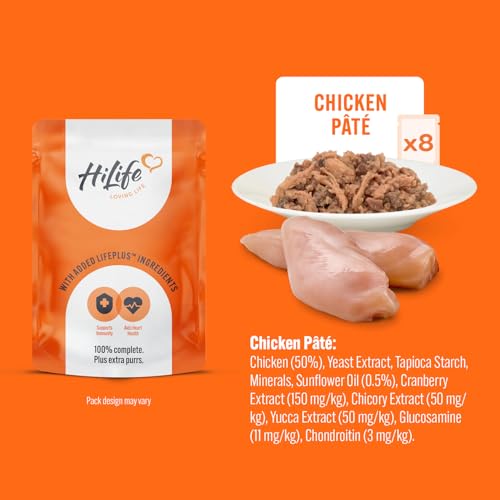 Specification: HiLife Mature Wet Cat Food for Senior Cats, Chicken Terrine in Jelly, Complete Senior Cat Food Pouches, 100% Natural & Grain Free (32 x 70g Pouches)