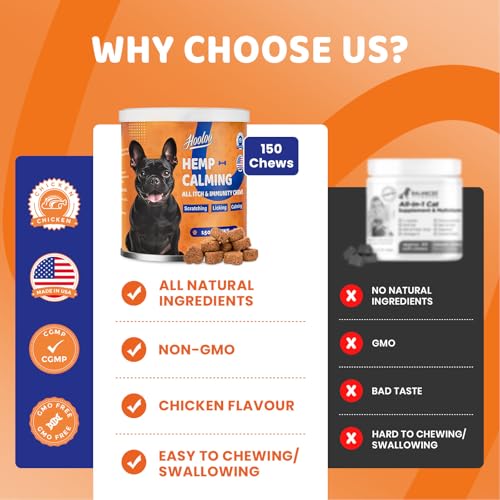 CALMING DOG TREATS – HOOLOO calming dog treats with Itch Immunity for dogs health helps soothe and reduce dog’s anxiety, stress, hyperactivity, reactivity, barking & fear caused by fireworks, loud noises, or thunder, travel carsickness, separation, training and other behavioral issues. Help your dog become calmer and more relaxed and support seasonal Itching.