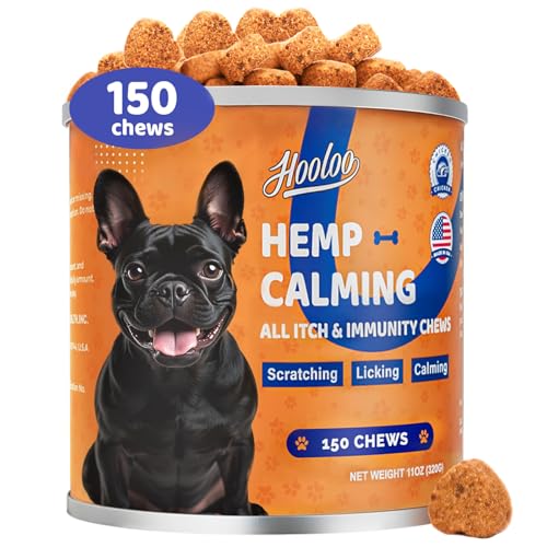 HOOLOO Calming Dog Treats with Itch Immunity for Dogs, Soothe Itchy Paws, Eyes, Ears, Skin | Stop Itching, Licking, Scratching | Reduce Stress, Fear, Barking – Supports Seasonal Itching, 150 Count