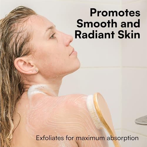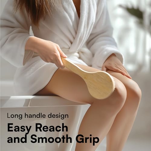 Enhanced Skin Glow: Experience expertly scrubbing the skin with our back scrubbers for use in shower. The wooden back brush long handle for shower scrubbing allows you to achieve radiant, smooth skin across your entire body. This shower brush with long handle is a must-have for your self-care gear