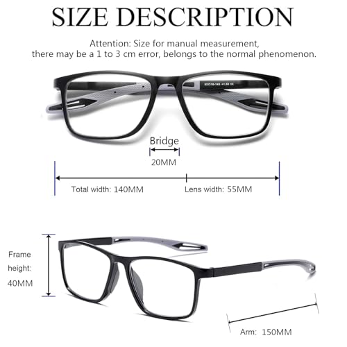 💎【High quality TR90 reading glasses】Professional sports reading glasses for men, sturdy and durable, wear without pressure, do not pinch the face. The nose pads is made of environmentally friendly silicone material, which fits the face, anti sweat and anti slip. The soft TR90 temples can bend freely and are not easily broken.