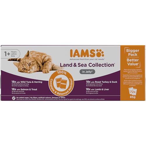 IAMS Adult Wet Cat Food Land & Sea in Jelly 72 x 85g