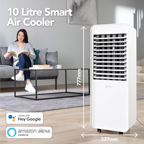 Igenix IGFD7010WIFI 10 Litre Smart Digital Air Cooler with Amazon Alexa & Google Assistant, 8 Hour Timer with 3 Speeds and Oscillation, Humidification Function, White