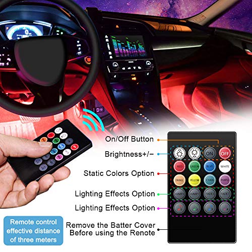 Specification: Interior Car Lights Trongle Car Strip LED Lights, Waterproof with 4pcs 48 LEDs 8 Colors with Sound Sensor and Remote Control, USB Port Cars Charger Light Bar, Car Music Sound-activated Lighting, DC 5V