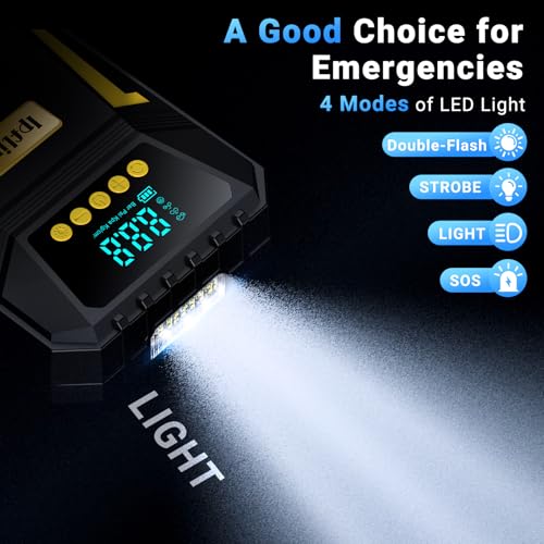 【Digital Screen, Real-Time Pressure and Modes Display】:This Ipflin tyre inflator has a large digital screen that displays the real-time pressure of the tyre and the mode of inflation, giving you an accurate and intuitive reading experience, the digital display readout avoids the reading error of the traditional dial tyre pumps; the ice-green display is different from the black-and-white font display, which is also able to be read clearly under strong light.