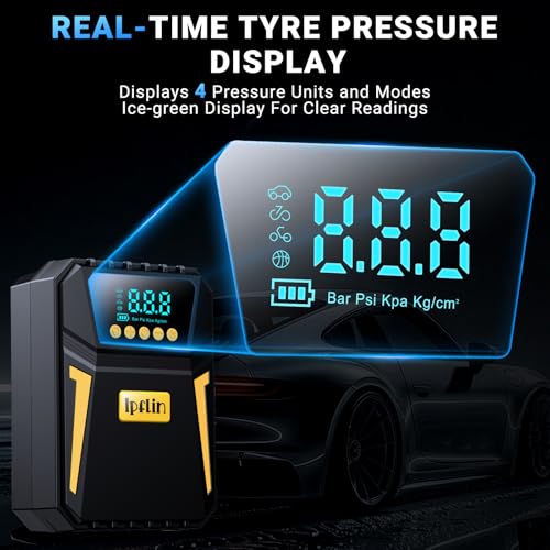 Specification: Ipflin Tyre Inflator Air Compressor – Digital Car Tyre Pump 12V DC,Portable Car Accessories for Men,Electric Air Pump 150 PSI For Car Tyres,Bikes,Football,Preset Tyre Pressure & Auto Shutoff