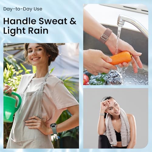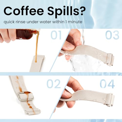 Water Resistant: The Joehwerr stretchy Compatible for Samsung Galaxy Watch 6 strap is designed with innovative splash-proof technology. Droplets simply slide off, ensuring it can effortlessly deal with sweat, light rain, and accidental splashes. In the event of spills such as coffee on your sumsung watch 4 strap, a quick rinse under water within one minute is all it takes to restore the strap to a clean state