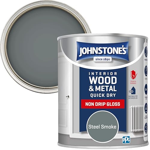 Johnstone’s – Wood & Metal Paint – Gloss Finish – Steel Smoke – 750ml – Water Based – Non Drip & Quick Drying – Radiator Paint – Low Odour – Dry in 1-2 Hours – 8m2 Coverage per Litre