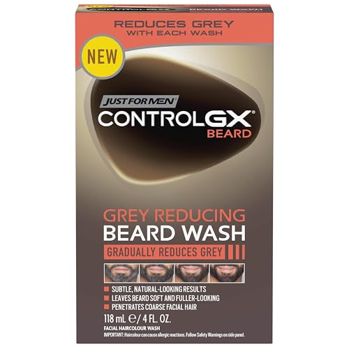 Just For Men Control GX Beard Wash, Reduces Grey with Each Wash for Subtle, Natural – Looking Results – All Shades, 118 ml