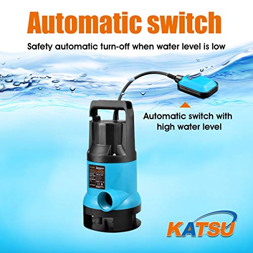 KATSU 750W Portable Submersible Pump for Clean and Dirty Water for Garden Pond, Pools, Ditches + Float Switch