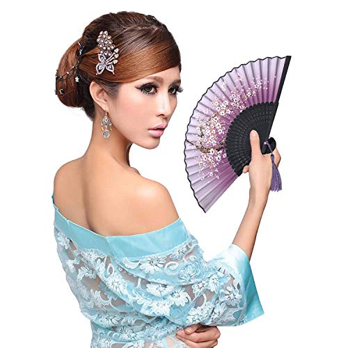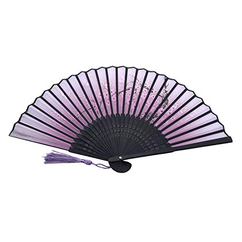 Specification: Kibon Folding Fans, Handheld Fans, Hand Fans, Bamboo Fans with Tassel for Birthday Gifts Dancing Cosplay Wedding Party Props Decoration (Purple)