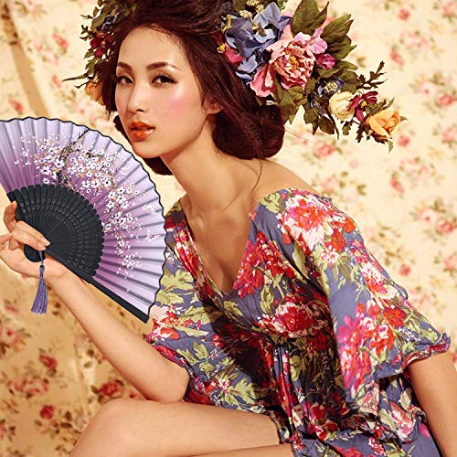 Kibon Folding Fans, Handheld Fans, Hand Fans, Bamboo Fans with Tassel for Birthday Gifts Dancing Cosplay Wedding Party Props Decoration (Purple)