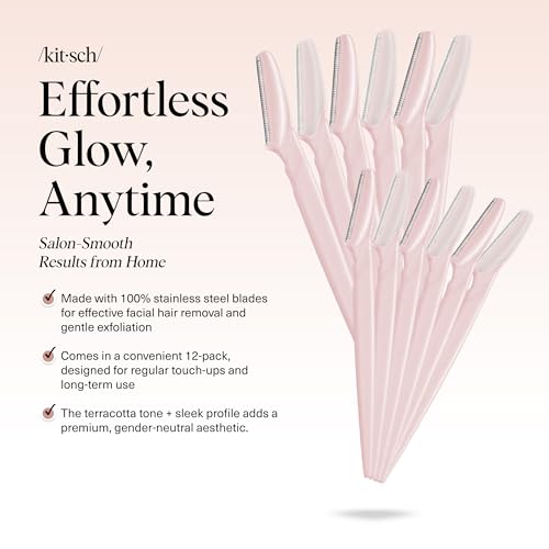 Kitsch Dermaplaning Blades For Face – Face Razors for Women and Men | Eyebrow Razor & Facial Hair Remover | Exfoliates Facial Skin, Eyebrow Shaper | Dermaplaning Tool, 12pc (Blush)