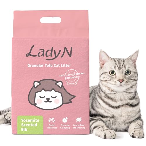 Specification: Lady N Granular Tofu Cat Litter Mini-Pellet Compatible with Automatic Self-Cleaning Cat Litter Box, Premium Clumping Ultra Absorbent Natural Litter, Low Tracking, Odor Control (Yosemite Scented) 9lb
