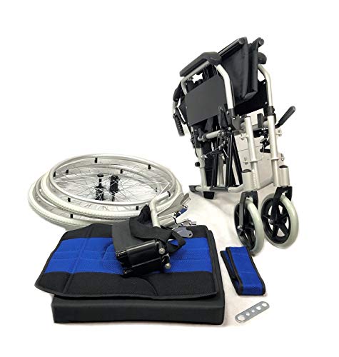 ✔ Made from light weight aluminium ✔ Attendant Brake and parking brake for security and stability ✔ Folds away for easy storage – Max weight 120kg