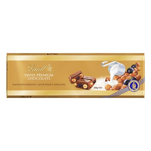 Specification: Lindt Swiss Milk Chocolate Hazelnut and Raisin Gold Bar 300 g