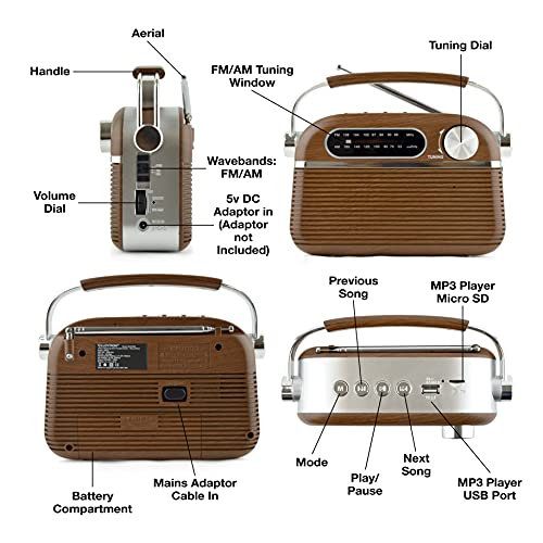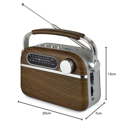 Specification: LLOYTRON “Vintage” Style AM/FM Radio with MusicStream- Portable and Rechargeable – MP3 Playback via USB or Micro SD – Mains or Battery Powered – N6403WD – Wood Effect