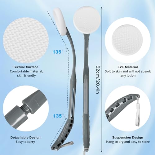 【Detachable Non-Slip Handle】- Unlike traditional straight-handled long-handled brushes, this 20.5-inch back applicator for lotion can be disassembled into two parts and can be taken anywhere. The non-slip thickened handle provides a comfortable and firm grip, fits the curve of the human body and fits better on the back, so you don’t have to worry about slipping when using it