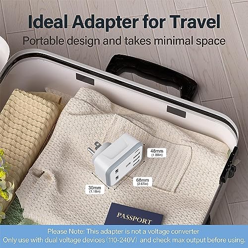 【Powerful Smart USB C Charge Up 30% Faster】The USA plug adapter’s total output of 3 USB ports is 5V/3.4A. Built-in smart technology, the multi-plug outlet can auto-detect charged devices and deliver optimum charging speed up to 5V/2.4A (max) for each port, USB-C up to 3A.