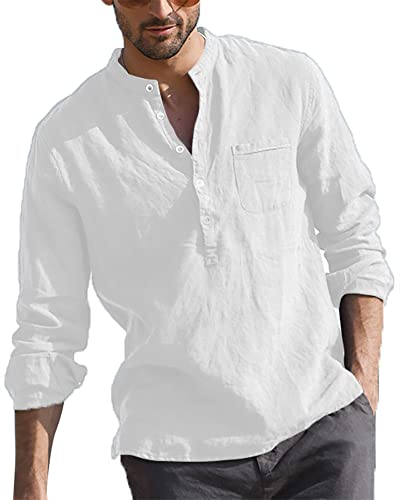 Specification: LVCBL Mens Casual Cotton Shirt Long Sleeve Band Collar Henley Shirt Tops