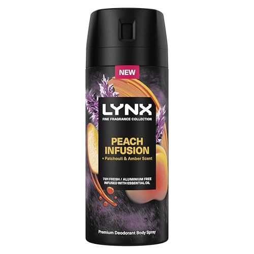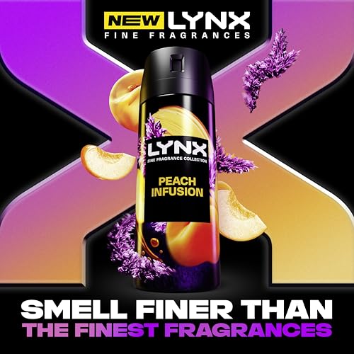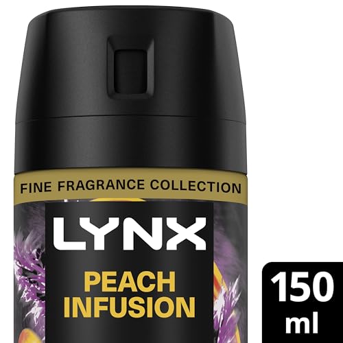 Specification: Lynx Fine Fragrance Collection Peach Infusion Premium Deodorant Body Spray Antiperspirant for 72 hours of freshness, infused with a peach, patchouli & amber scent 150 ml
