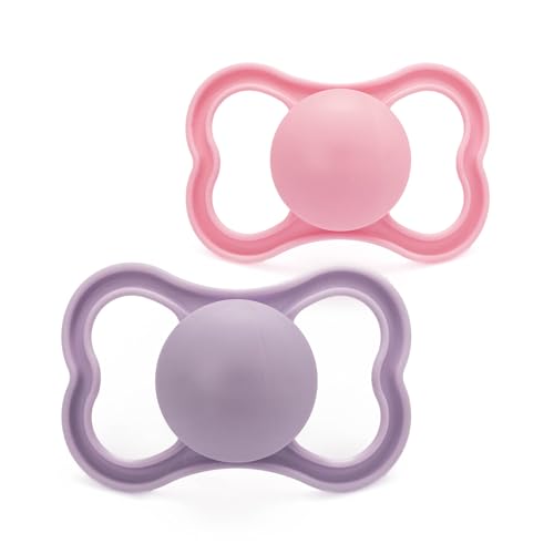 Specification: MAM Air Soothers 6-18 Months | 2 Pack | Orthodontic Design | Comes in Dummy Steriliser Case | Sustainable Materials | Baby Accessories | Pink (Various Designs)