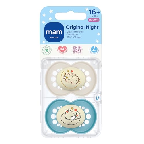 Specification: MAM Original Night Soothers | 16 Plus Months | 2 Pack | Glow in The Dark Dummies | Comes in Dummy Steriliser Case | Sustainable Materials | Baby Accessories | Blue (Various Designs)