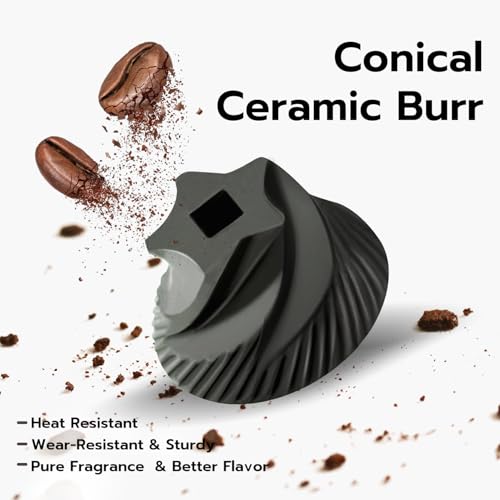 [ Ceramic Burr Grinding Core: ] This handy wireless electric coffee grinder is equipped with a conical ceramic grind core, which is not easy to get heated and retain the original favor and odor of the beans. The core is removable for cleaning.