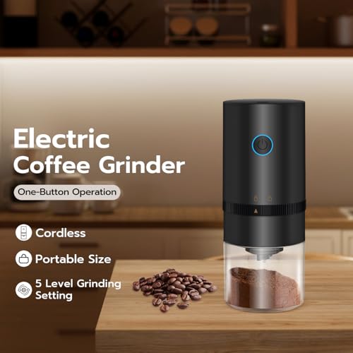 Mcbazel Electric Burr Coffee Grinder, Cordless Portable Coffee Bean Grinder, Rechargeable Mini Coffee Grinder with Multiple Grinding Settings