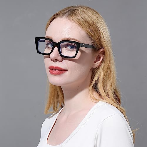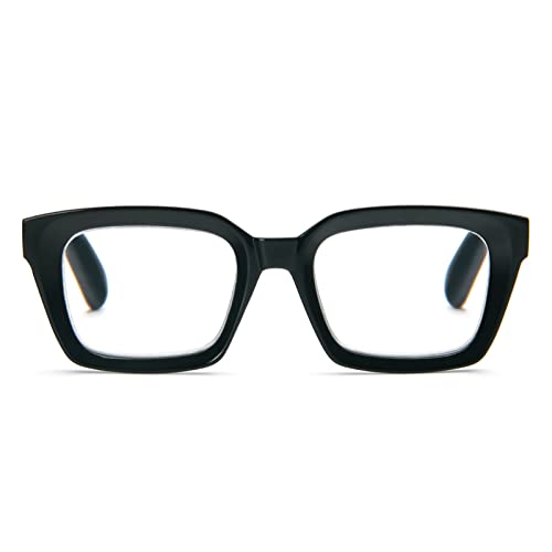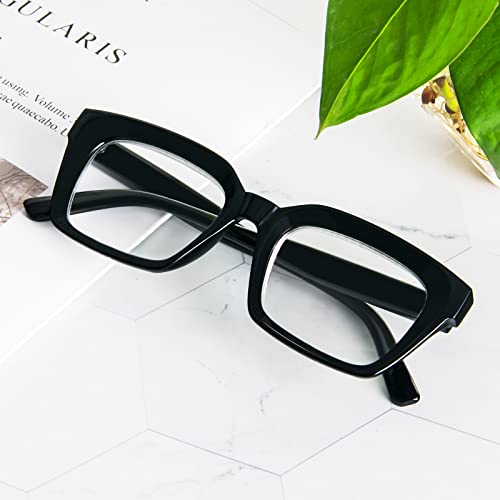 MMOWW Oversized Reading Glasses for Women – Anti Blue Light Glasses with Square Frame (Black, +1.5)