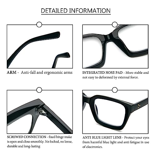 Specification: MMOWW Oversized Reading Glasses for Women – Anti Blue Light Glasses with Square Frame (Black, +1.5)