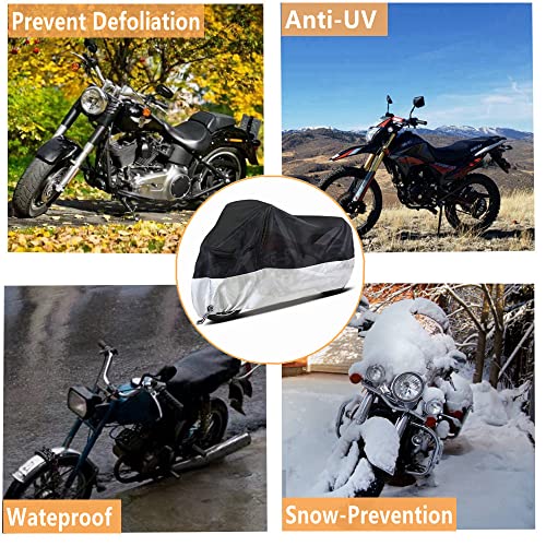 Motorcycle Covers, Outdoor Waterproof Motorbike Covers with Lock-Holes & Storage Bag, Fits up to 96.5″ Motorcycles