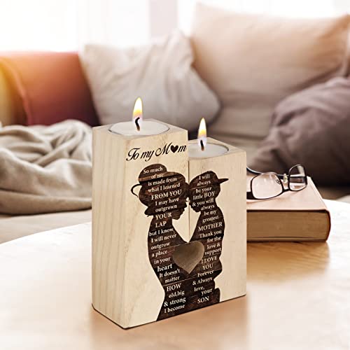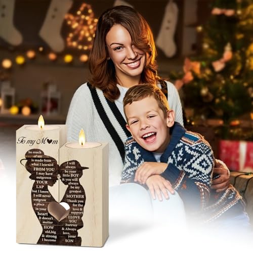 【Mum Birthday Gifts】The candlestick is printed with”So much of me is made from what I learned from you I may have outgrown YOUR LAP but I know I will never outgrow a place in your heart It doesn’t matter HOW old,big & strong I become.I will always be your little BOY & you will always be my greatest mother Thank you for the love & support.I love you Forever & Always love,your son”This candles holders gift suit for many festival , such as Birthday, Mothers day,Christmas,Thanksgiving.